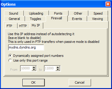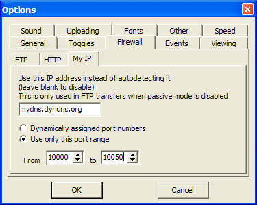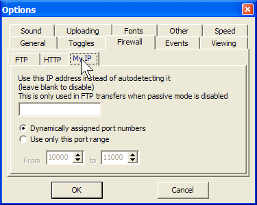 Step 6 Click on the radio-button labeled Use only this port range and enter a range of TCP/IP ports. I recommend using 59,100 through 59,199, but your really only need 1 port per data-connection. A range of 99 would allow you to run up to 99 FTP transfers at any given time. Click OK to save your changes.